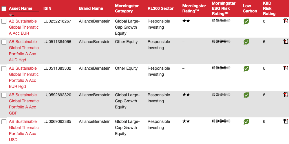 ファンドはRL360°の「RL360 Regular Savings Plan – Fund Centre」で公開されており、誰でも閲覧が可能です。
