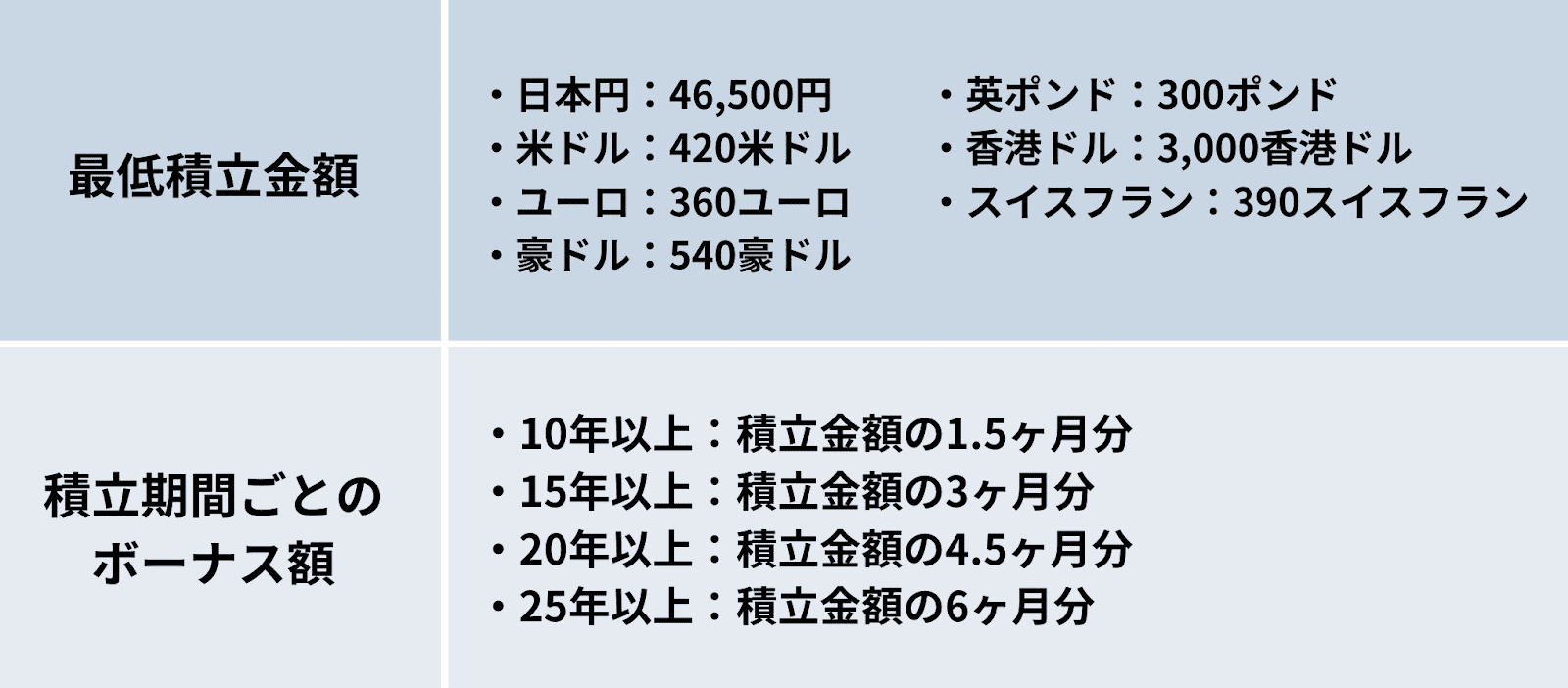 最低積立額月31,000円(積立年数10年未満は2倍)